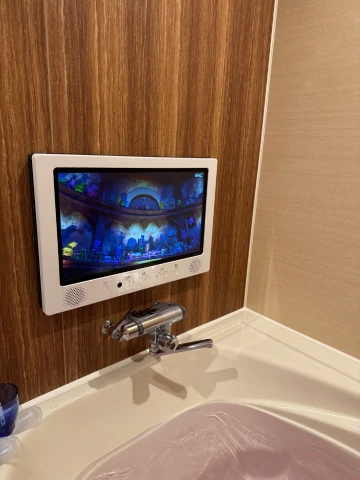 お風呂にめちゃデカテレビもついてて